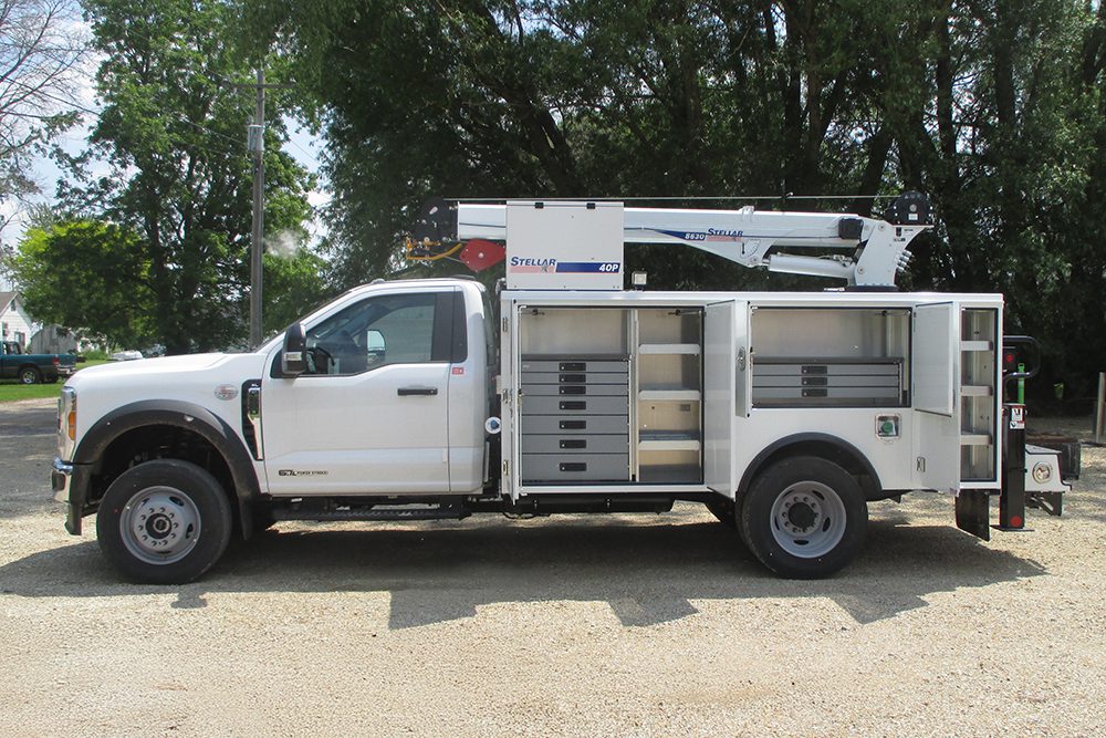 - Stellar® rear taillights equipped with integrated strobe lights, license plate bracket, ID light bar, reflectors, and one flood light mounted on top of each box