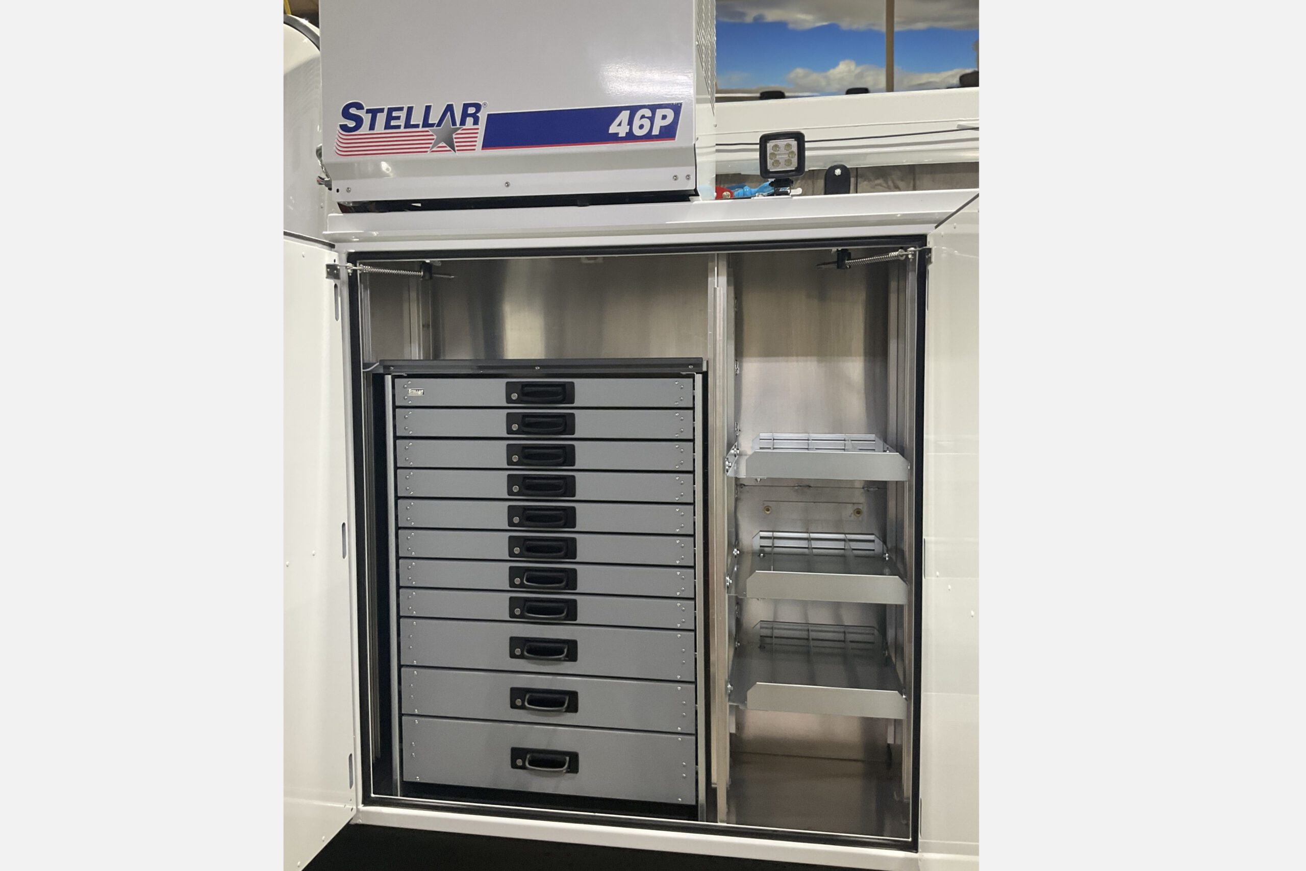 - Heavy Duty Aluminum Drawer set, 11″H x 48″W x 18″D, 3-3″ Drawers (23378AX) w/Light Bar