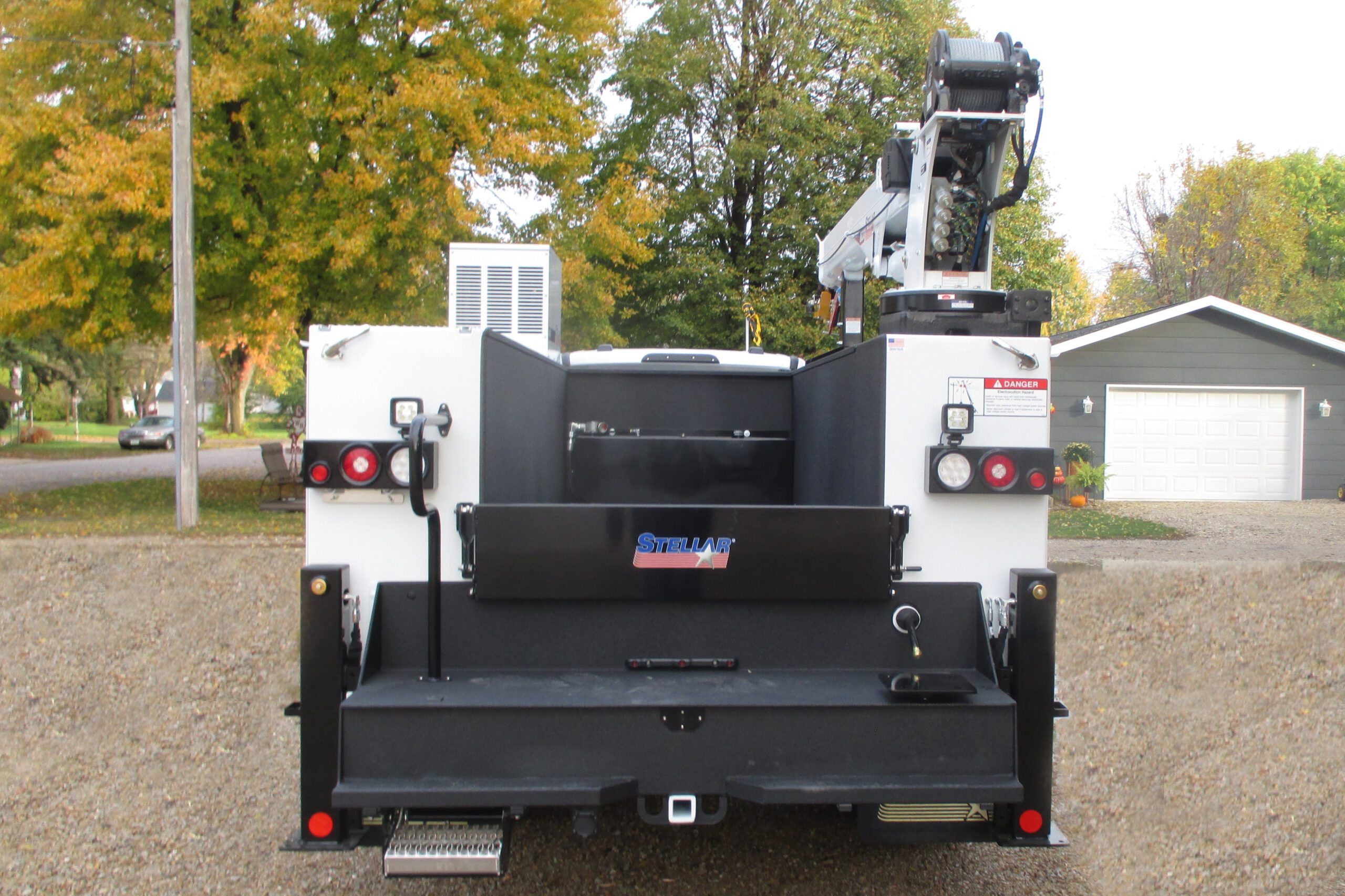 - Stellar® rear taillights equipped with integrated strobe lights, license plate bracket, ID light bar, reflectors, and one flood light mounted on top of each box