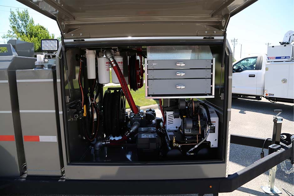 When the job needs done, don’t lose precious time by pulling equipment away to refuel. The generous 990-gallon capacity of the Stellar® FuelMate® 990DLX Deluxe Fuel Trailer makes it easy to keep equipment and vehicles fueled onsite to maximize productivity in the field.