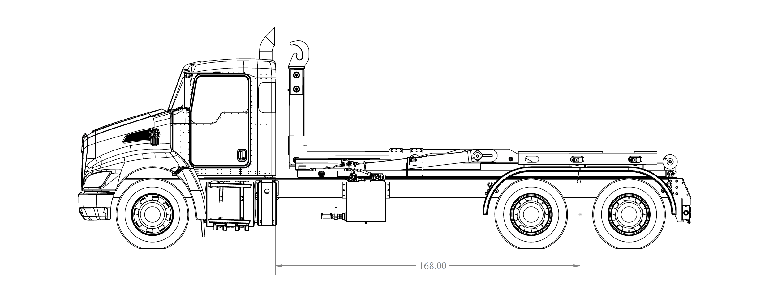 | Cab to Trunnion (CT): | 160" – 174" (4,064 – 4,420 mm) |