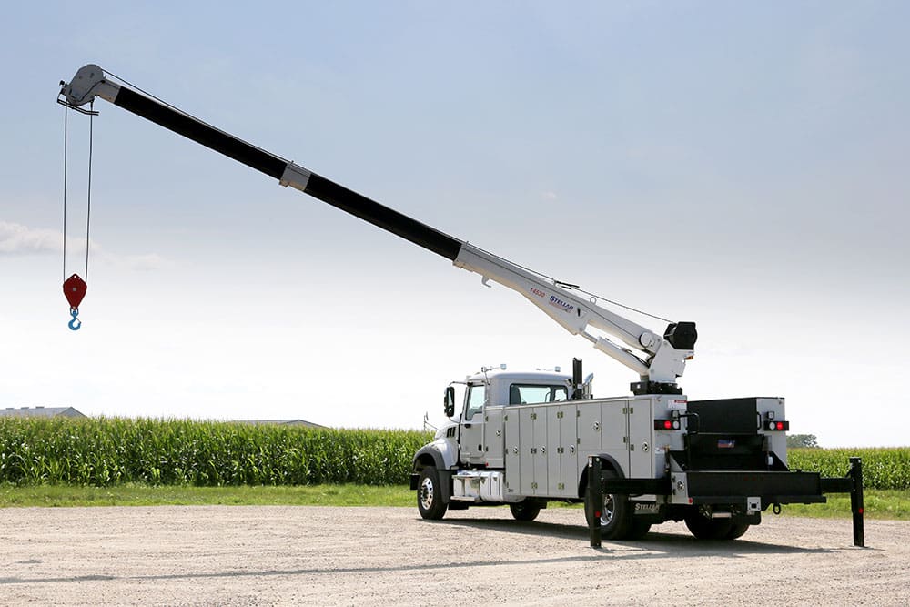 When you need to go big, go with Stellar’s newly redesigned 14530 Telescopic Service Crane. The new heavy-duty crane has a unique boom design that reduces weight while maintaining strength, and the compact boom tip provides easier reach into small spaces. The 14530 is packed with the power to lift up to 14,000 lbs and the quality construction ensures reliable performance day in and day out under the toughest conditions. The 14530 also works with the CDTpro™ Control System for remote control away from the load.