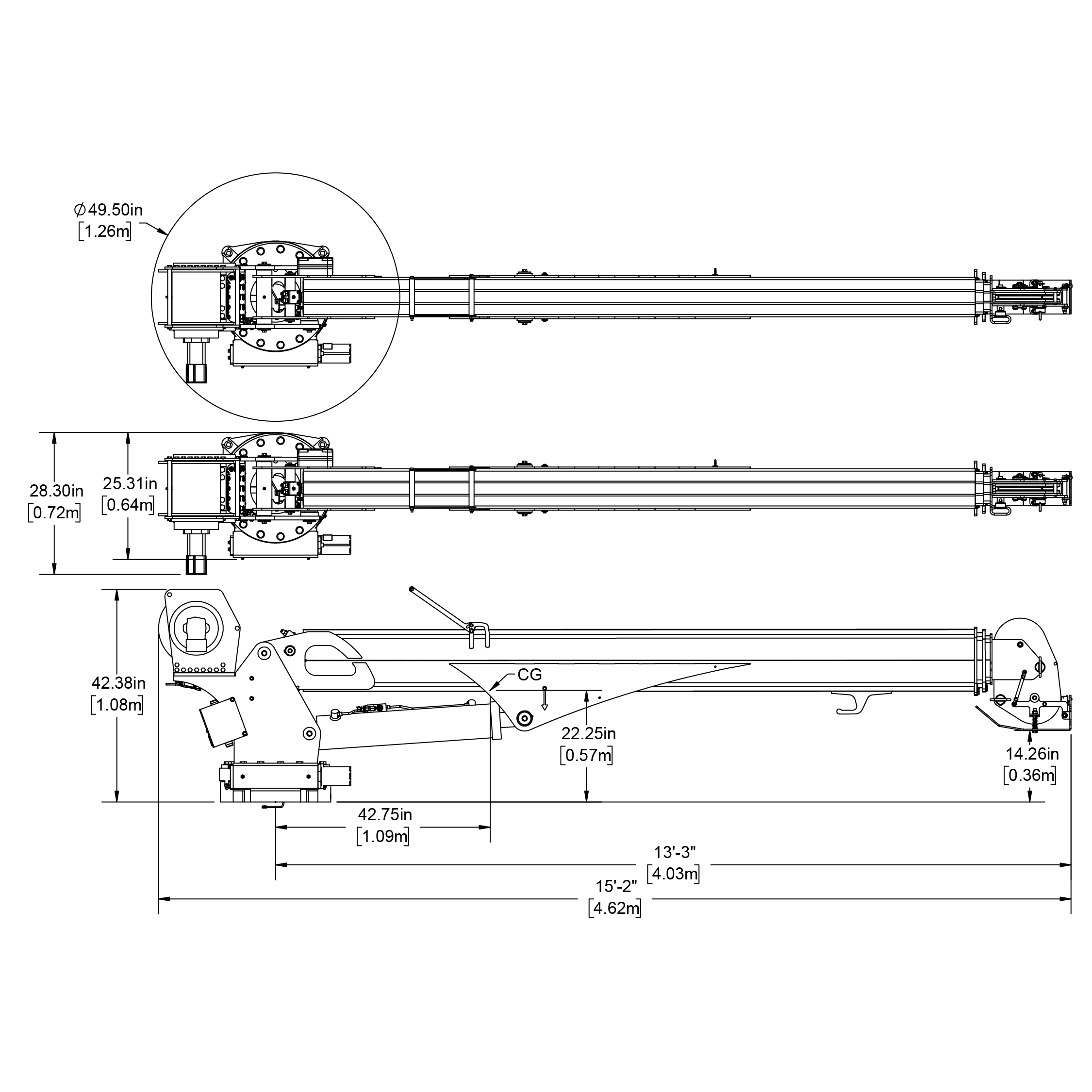 | Boom Length: | 13' 3" (4.03 m) from CL of crane |
