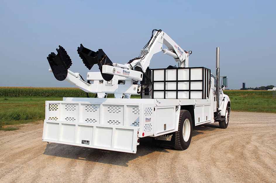 The Stellar® 138-215 Ag Service Truck features a rugged, heavy-duty 15′ steel service body with over 60 cubic feet of storage.