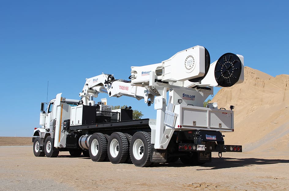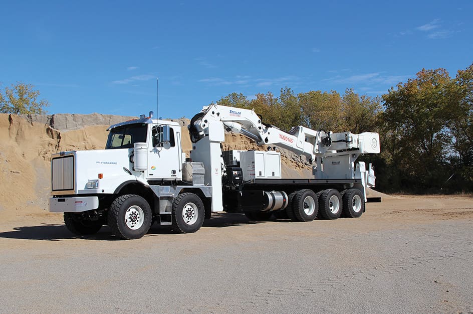 The Stellar® TM20165 Large OTR Service Truck is ideal for service technicians who change the largest OTR tires. The TM20165 offers the most powerful and capable truck-mounted tire manipulator available in the industry today.