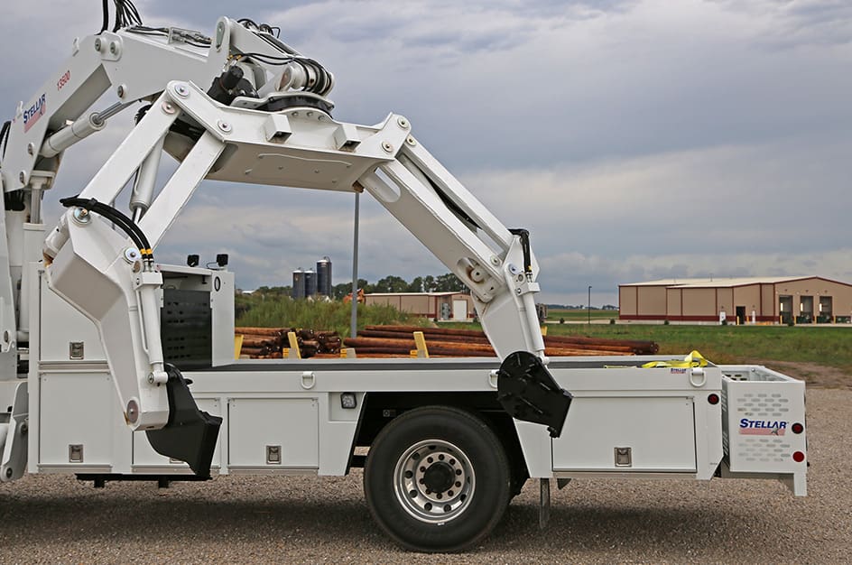 As with all Stellar OTR Tire Service Trucks, the carrier incorporates a hexagonal boom design. This boom design is well known in the industry for its excellent strength and durability.