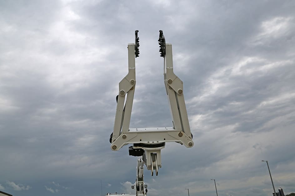 The TM6116/13500 has fold-down style stabilizers with a wide stance to give excellent stability whether mounted on a single- or optional tandem-axle chassis. This stabilizer system also offers excellent serviceability of all cylinders and hoses.